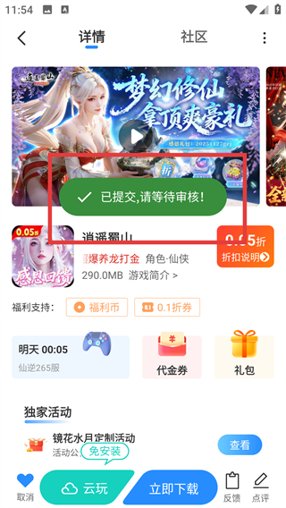 1、在首页找到目标游戏(比如【逍遥蜀山】),点击它就能进入游戏详情页面,查看游戏信息啦。