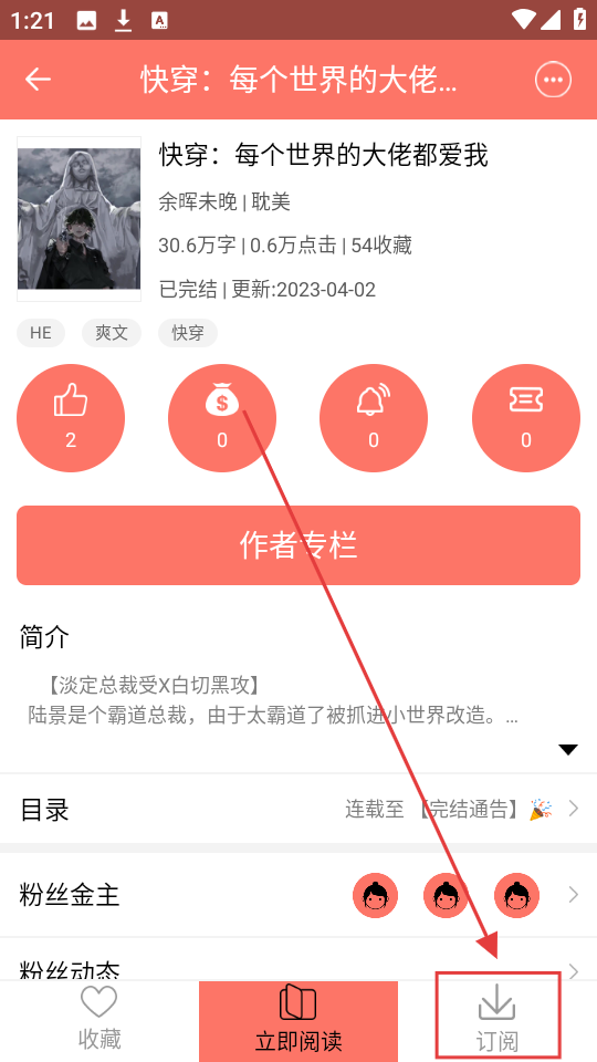 2、点击感兴趣的书籍进入详情页后,点击【订阅】,可进入下载/订阅页面哦。