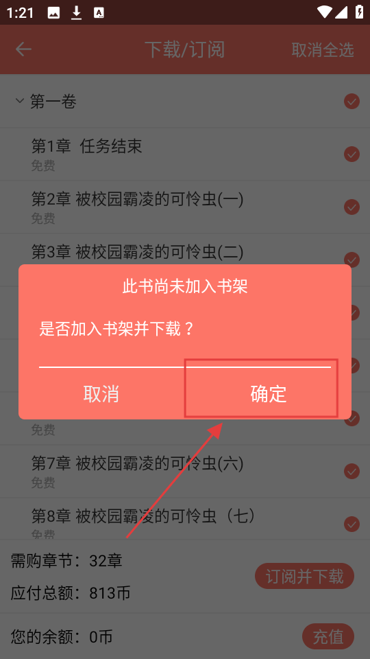 3、在下载/订阅页面,点击【订阅并下载】,可触发加入书架提示框啦。