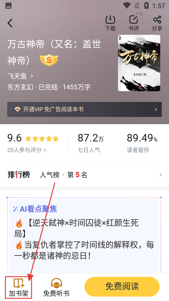 2、点进小说后,若想方便后续查看,就点击【加书架】按钮,把小说加入书架吧。