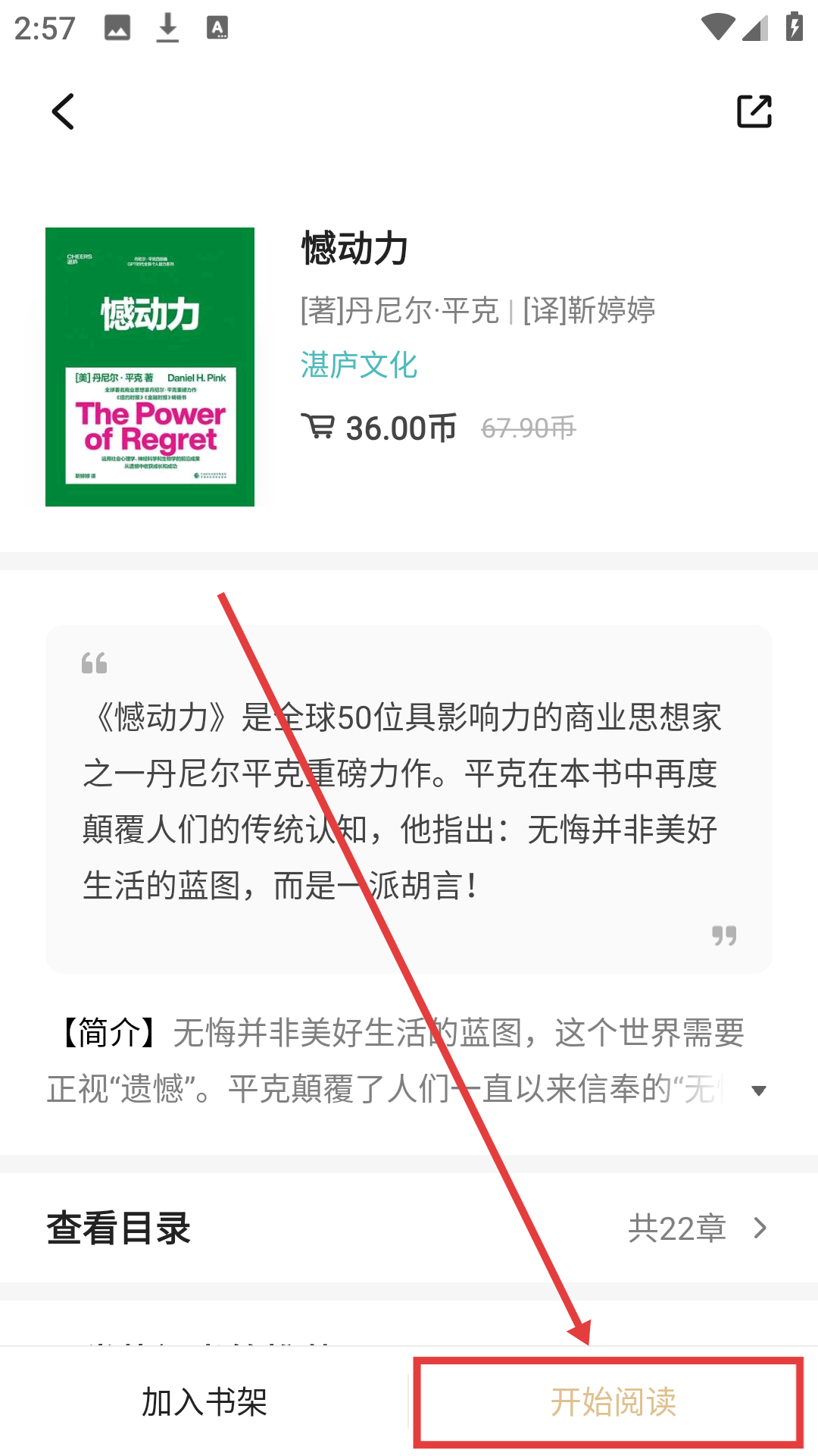 2、进入书籍详情页后,点击【开始阅读】,可进入书籍阅读页面哦。