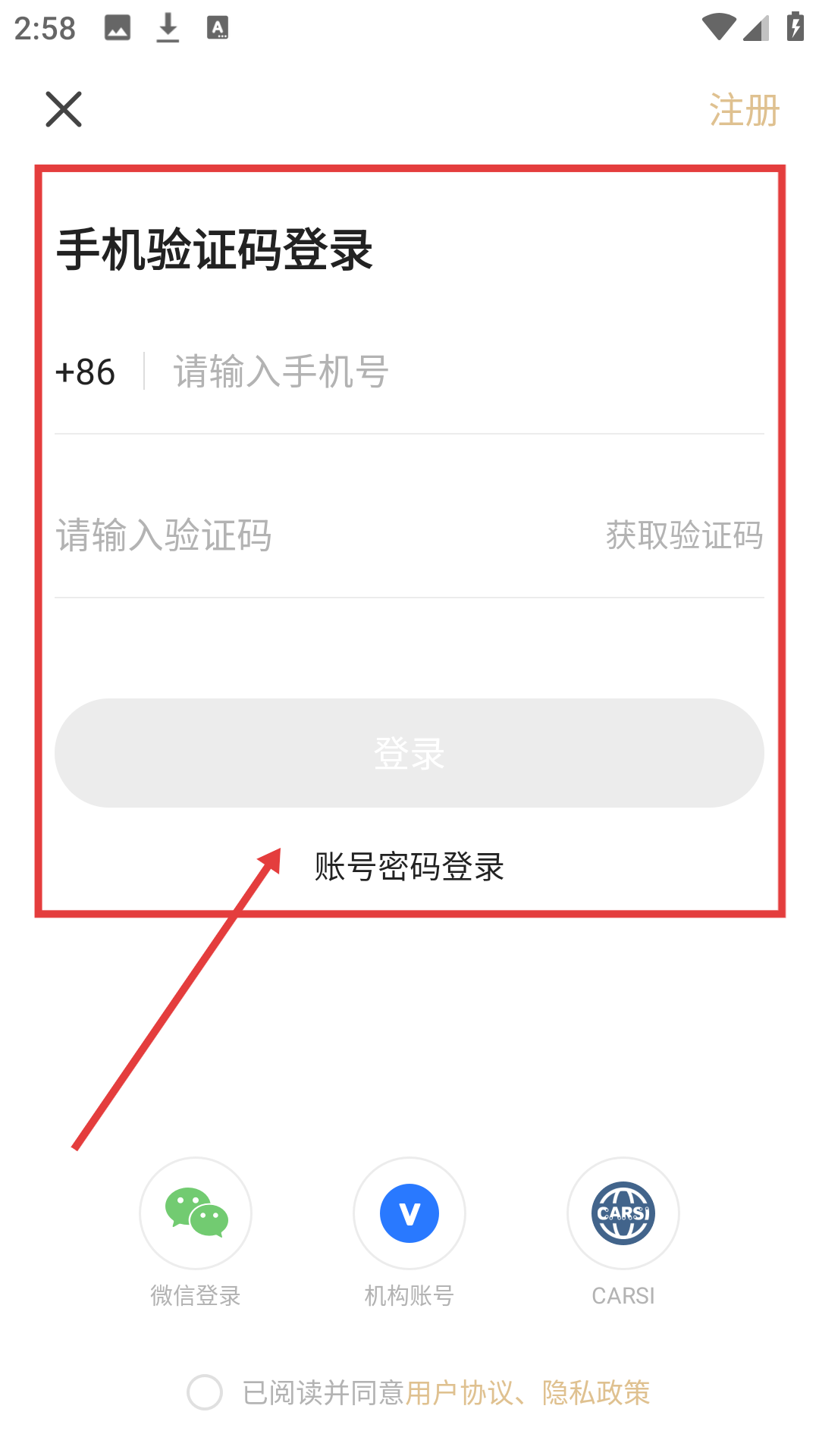 4、发起购买操作后,会进入登录页面,可选择手机验证码登录或账号密码登录,登录后即可完成书籍购买哦。