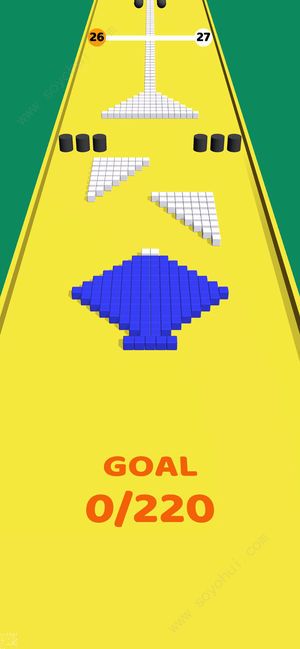 2、测试你的手速,避开各种障碍物,粘贴指定数量的方块以通过关卡。