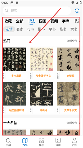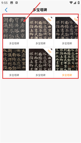 1、在作品页选【书法】分类,能看到热门书法作品列表,像【多宝塔碑】这类作品,点进去就能查看详情啦。