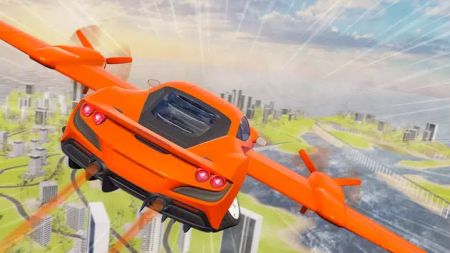 1、真正的运动飞行汽车3d游戏达到速度限制并在你的车里飞行,并在路上表演特技。