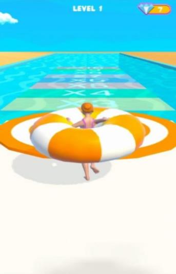 1、干净的游戏界面,玩家可以看到自己操纵的形象和在赛道上前进的救生圈。