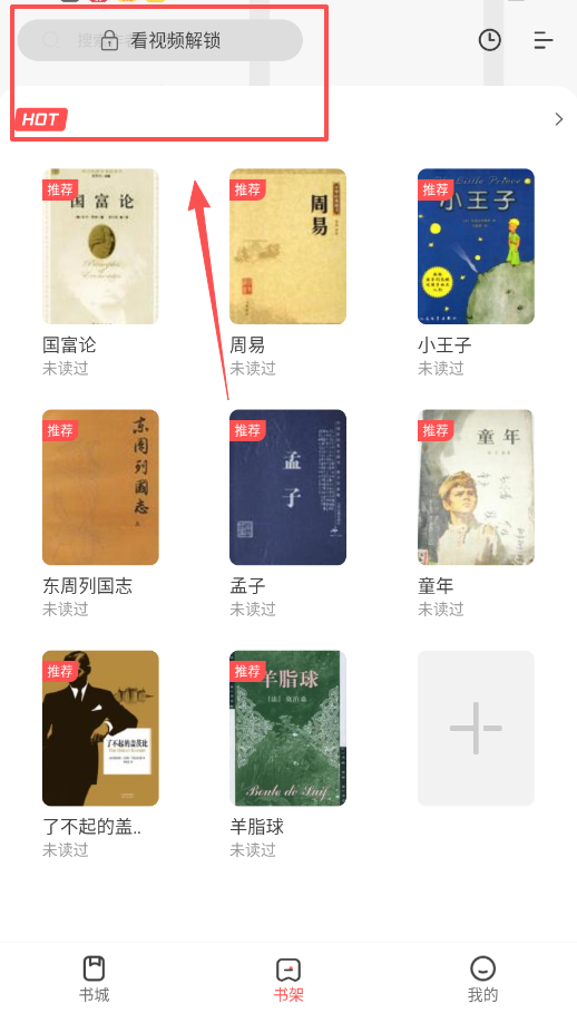 3、留意“看视频解锁”区域,像小王子、孟子这些标着未读的书,其实只需要看个短视频就能解锁。