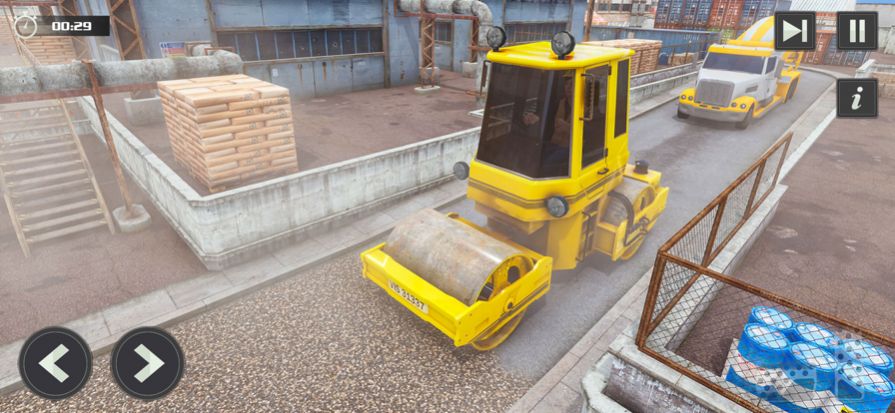 2、这款游戏是模拟压路机行驶,去驱动压路机将道路上的所有物品翻滚。