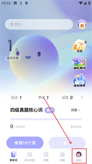 1、在APP的首页,点击底部的【我的】选项,可进入个人中心页面,准备调整学习相关设置啦。