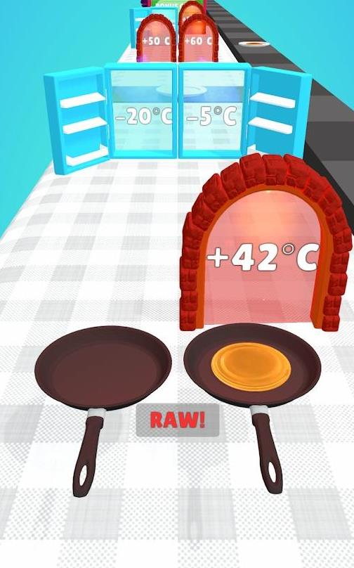 2、这款游戏里选择合适的温度通道对锅中的煎饼、比萨、鸡蛋等食物进行加热。