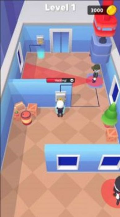2、扮演黑客的玩家可以使用网络设备,玩家必须受到几名警卫的保护闯关。