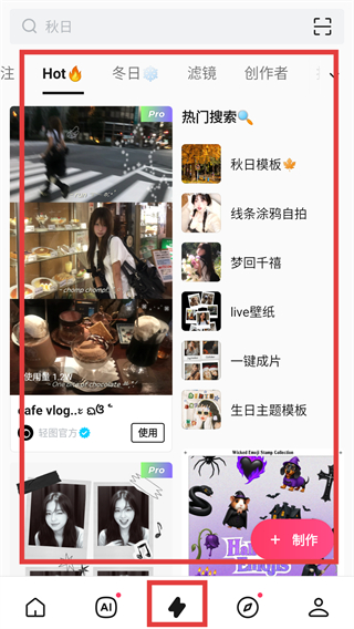 4、点底部功能栏的模板入口,能进入模板页面,选热门模板来快速装饰图片,让效果更出彩啦。