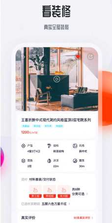2、分类出更多真实的装修案例,用户可以更好的对自己的房子装修风格进行实时筛选,满足用户对智能装修进行选择使用。