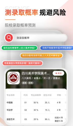 3、基于智能大数据分析,考生只需输入文化与专业智能匹配方案,即可解决艺术类考生高考填报问题。