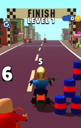 1、玩家在游戏中扮演一个想开摩托车的赛车手,用最好的操作成为最好的驾驶高手。