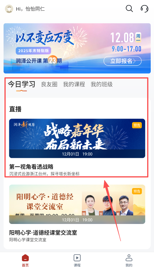 3、报名课程很简单,在课程海报或详情页找到“立即报名”按钮,比如那个12月8日的公开课,点一下就能报名了。