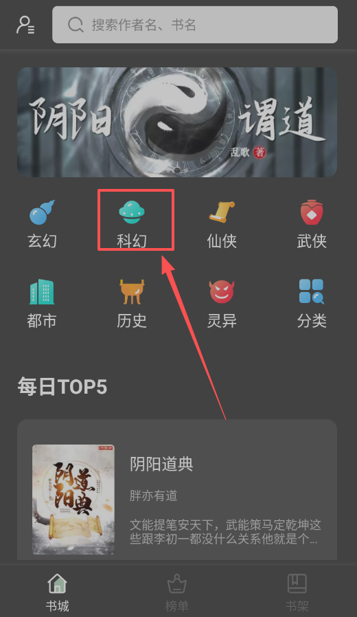 1、你可以使用首页顶部的搜索功能直接查找特定书籍,如果没有明确目标,不妨浏览下方的分类标签,如武侠、玄幻、科幻等。