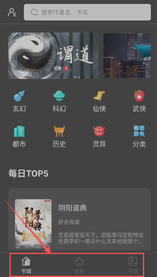 4、应用底部固定有书城、榜单、书架三个功能入口。找书时建议结合使用书城的分类浏览和榜单的热度参考。
