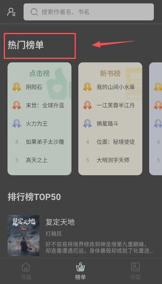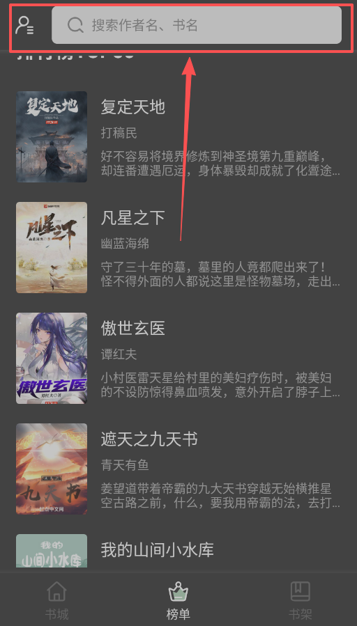 1、你可以在首页顶部的搜索框直接输入书名或作者名进行精确查找,能帮你快速把握阅读风向。