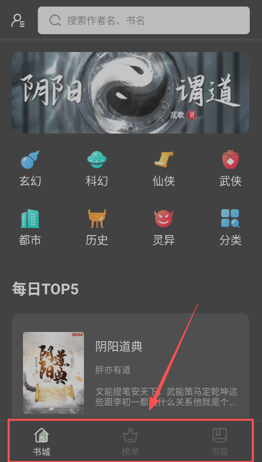 4、软件底部固定有书城、榜单、书架三个核心入口,找书时主要利用书城的分类推荐和榜单的数据排行。
