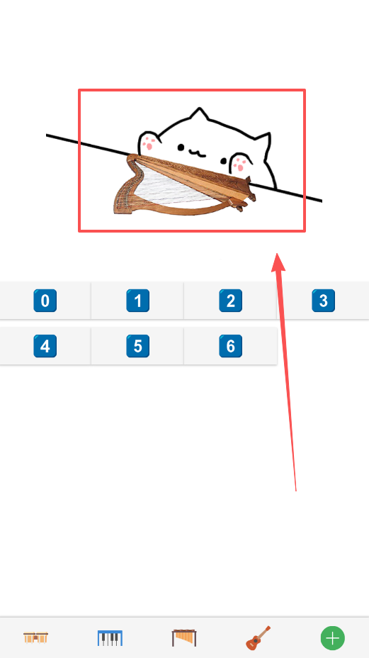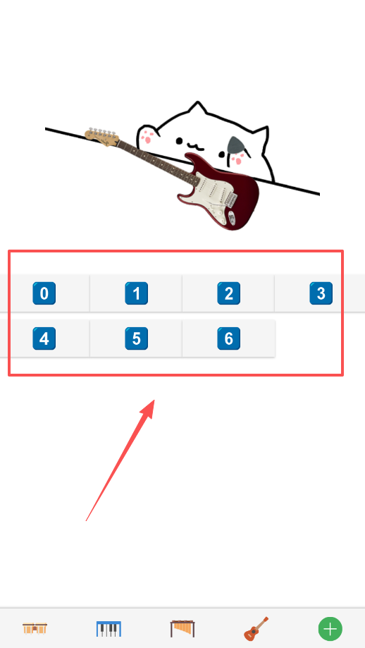 2、接着你可以看到屏幕上有许多乐器图标,比如吉他、鼓或是电子琴,用手指点击你喜欢的那个,猫咪的小手就会握住相应的乐器了。