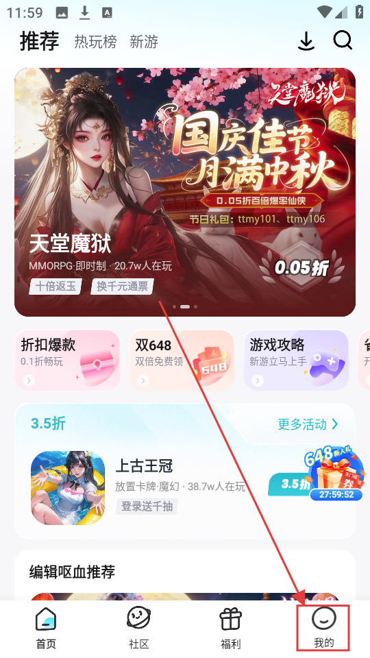 1、打开平台首页,点击底部【我的】按钮,进入个人中心页面,准备进行平台币充值操作啦。