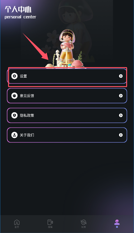 4、“我的”个人中心关注使用细节,提供“设置”、“意见反馈”等入口,你可以在此开关“个性化推荐”,阅读“用户协议”,进行个性化设置哦。