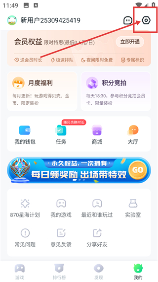 1、在游戏页点底部【我的】选项,能进入个人中心界面,后续可找到设置等功能入口啦。
