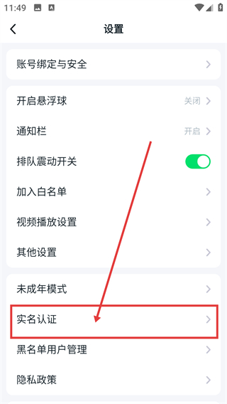 3、在设置页找到【实名认证】选项,点它就能进入认证界面,完成认证才能正常玩游戏哦。