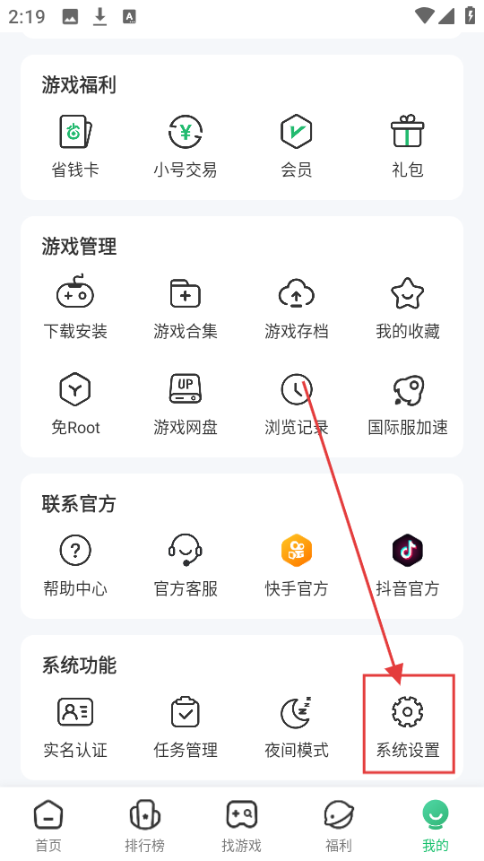 2、进入个人中心页面后,找到【系统设置】选项,点击它可进入设置界面,调整软件各项参数啦。