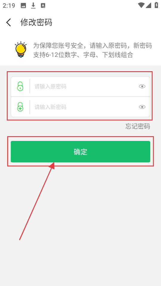 4、在修改密码页面,输入原密码和新密码后,点击【确定】按钮,即可完成密码修改操作啦。
