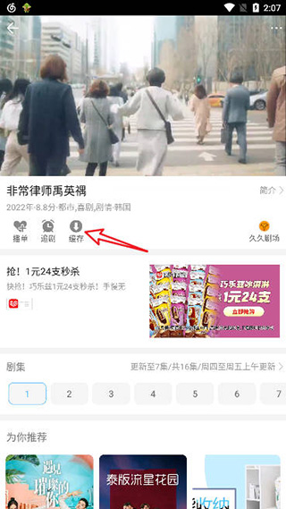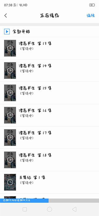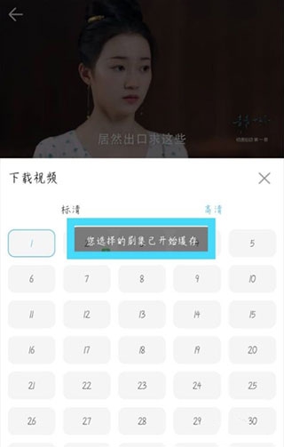 5、然后能看到屏幕上的提示,选择的剧集已开始缓存;