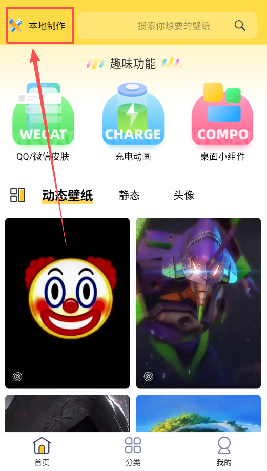 2、制作专属壁纸,可以点击“本地制作”功能,从手机相册选择照片并进行简单编辑,完成后保存并设置为壁纸,打造独一无二的桌面。