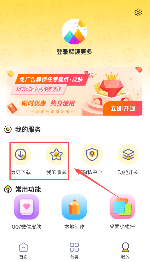 4、管理你的内容,可以在“我的”页面中找到“我的收藏”和“历史下载”,所有你收藏和下载过的壁纸都会在这里集中保存方便查找。