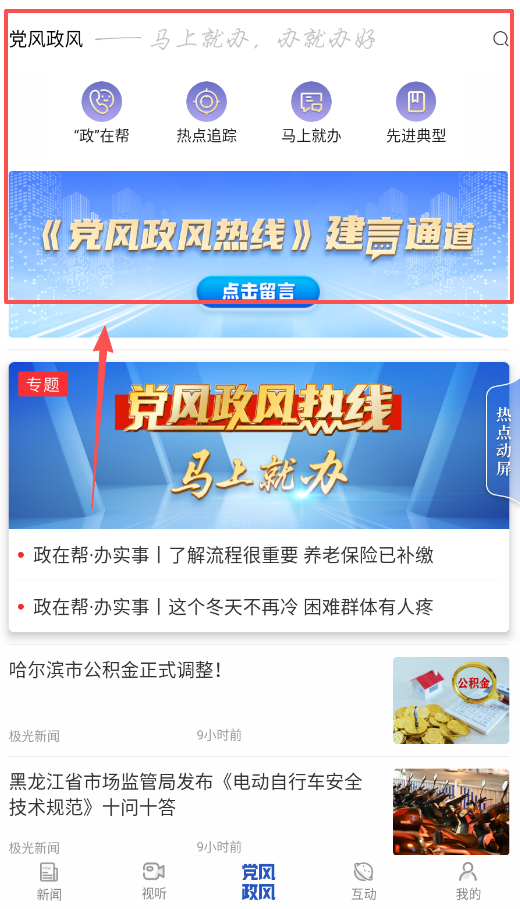 2、互动模块:“党风政风热线”是特色,它不是一个栏目,而是一个包含“政在帮”、“热点追踪”等子项的平台。