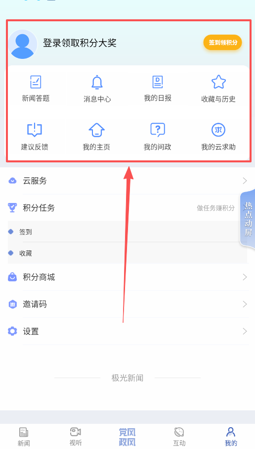 3、积分模块:在“我的”页面上方,积分任务清晰罗列,通过签到、答题、收藏等日常行为就能轻松累积。
