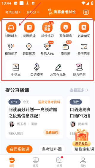 1、十分钟免费定位雅思成绩,规划听、说、读、写课程,学习方式很出色。