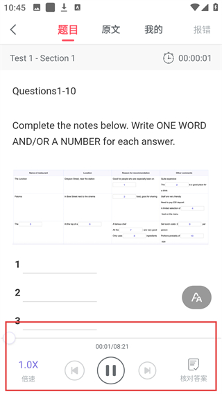 4、进入练题界面后,可调整倍速、控制播放,完成题目后还能点【核对答案】查看结果哦。