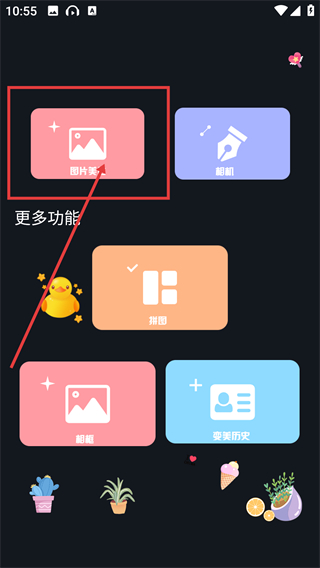 1、在图片处理工具首页点击【图片美化】选项,就能进入图片编辑界面,开启对图片的美化操作啦。