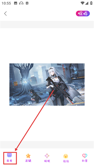 2、进入图片美化页后,点击底部的【裁剪】选项,就能打开裁剪功能栏,调整图片的尺寸比例哦。
