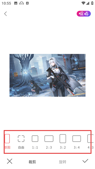 3、打开裁剪功能栏后,可选择不同的比例选项(比如1:1、2:3),快速调整图片的裁剪规格啦。