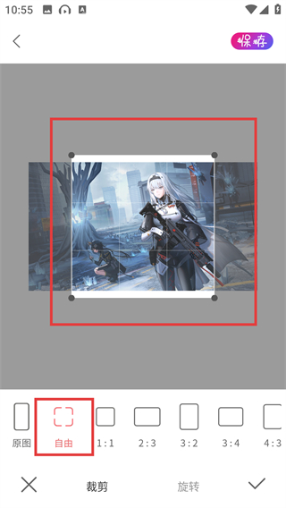 4、选择【自由】裁剪模式后,可手动拖动裁剪框调整范围,灵活裁剪出想要的图片区域哦。