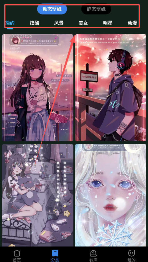 1、涵盖的壁纸资源还是很丰富的,都是详细分为各种类型。