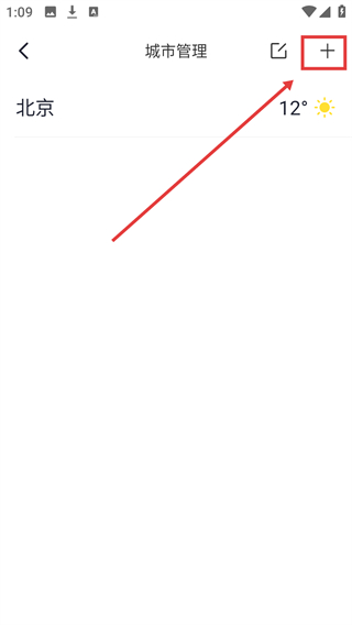 4、进入城市管理页面,点击右上角的【+】按钮,即可搜索并添加新的城市,方便查看多城市天气啦。