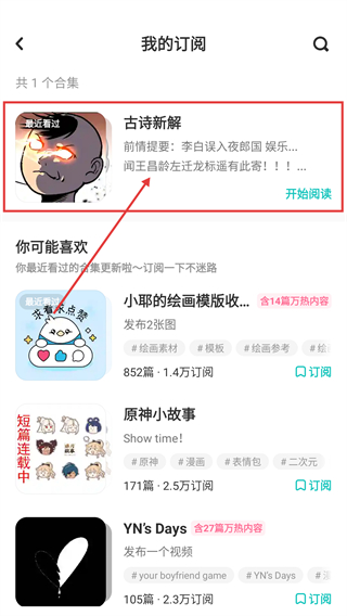 2、进入我的订阅页面后,选择目标合集条目,点击即可进入该合集的详情界面,查看具体内容哦。