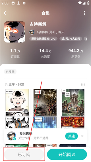 3、在合集详情页,若需取消订阅,点击【已订阅】按钮,会弹出确认取消的提示弹窗,准备操作呀。
