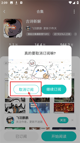 4、在取消订阅的弹窗中,点击【取消订阅】按钮,即可完成该合集的订阅取消操作,后续不会收到更新啦。