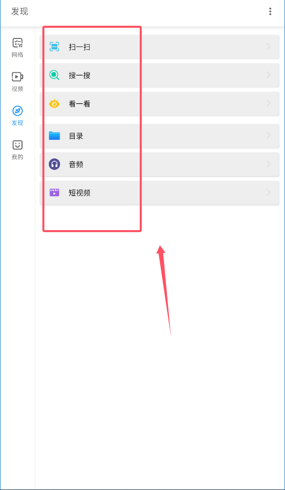2、选择右上方或者【发现】板块中的【搜一搜】【看一看】