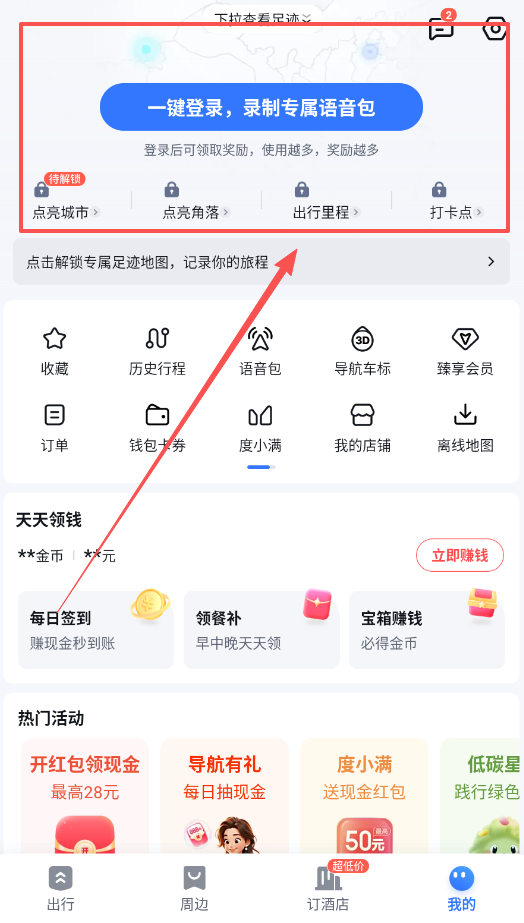 1、首要步骤是登录账号并录制语音包,这能解锁初始奖励和个性化导航体验,随后可在“我的”页面集中管理行程与订单。