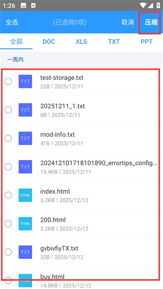 2、进入文档列表后,可看到TXT、HTML等类型文件,选好要操作的文件后,就能用右上角功能按钮啦。
